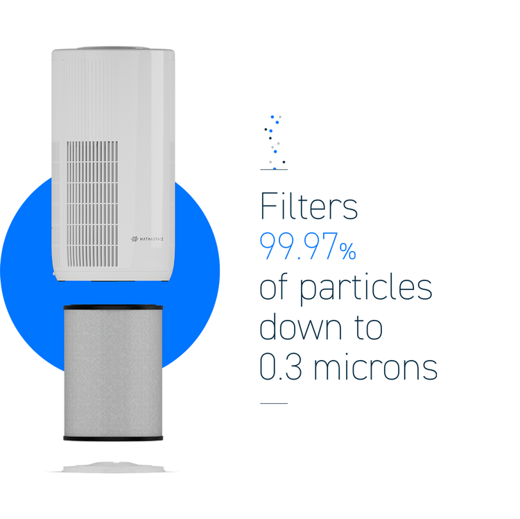 *Over 99.9% removal rate of Staphylococcus Albus & Escherichia Coli based on 3rd party testing (Intertek 2022)..Testing performed in appx. 128 sq. ft chamber over 60 minutes. Hathaspace does not make any claim that this air purifier removes SARS-CoV-2 from the air.